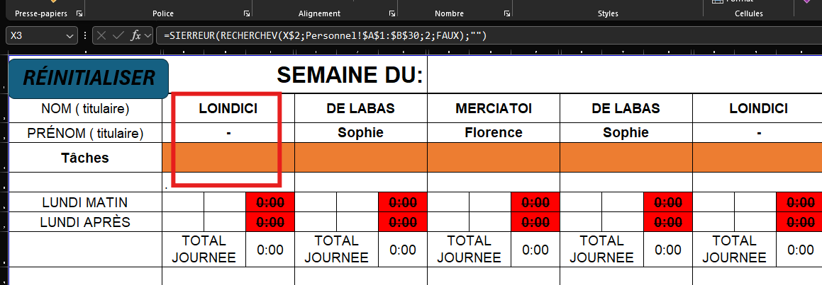 “=SIERREUR(RECHERCHEV(d$2;Personnel!$A$1:$B$30;2;FAUX);« »)