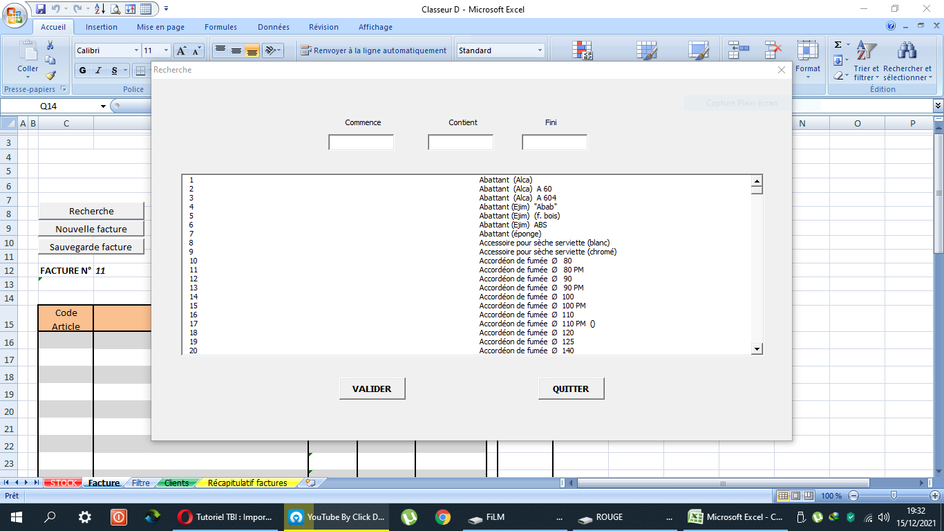 Exemple : je tape (Coude) et tous les articles contenant (Coude) s’affichent.
