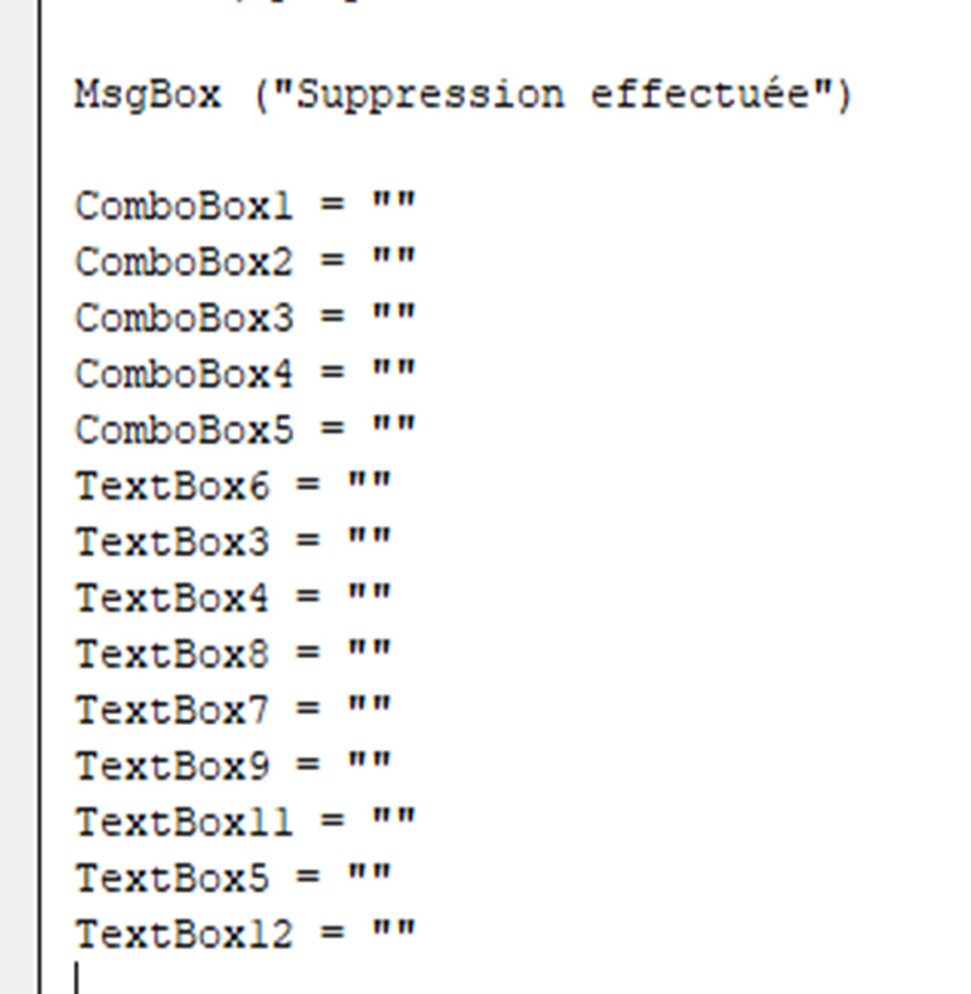 Plus besoin d Exit sub puisque le traitement touche à sa fin ce sont les 2 dernières phases juste avant le End Sub fin du traitement