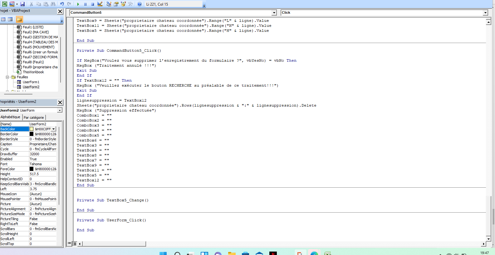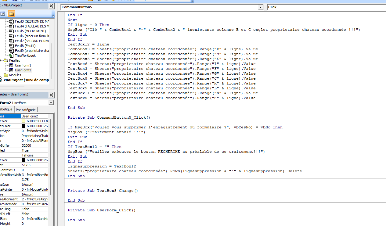 C est normale que cela reste car ces listes sont alimentées par les colonnes de l onglet « LISTE » et non de l onglet « proprietaire chateau coordonnée »