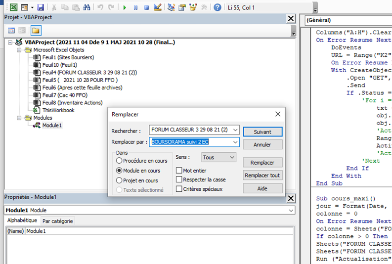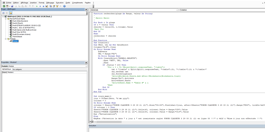 Je propose de t’envoyer le feuille code et module code de l’onglet BOURSORAMA suivi 2 EC
