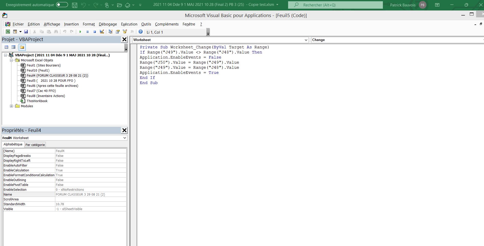 J’ai analysé sur l’onglet 2021 10 28 POUR FFO les feuille code et module code et je trouve les termes FORUM CLASSEUR …
