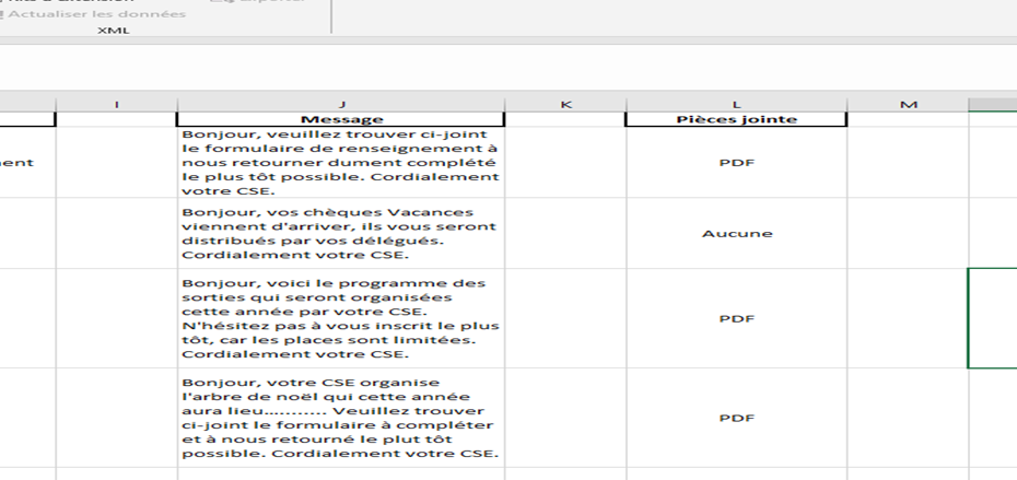 Une remarque importante concernant les pièces jointes listées en colonne L onglet « MAIL »