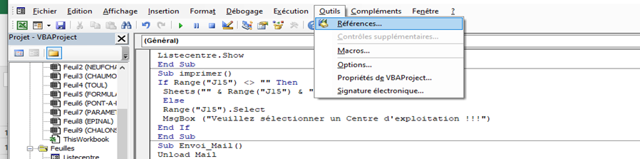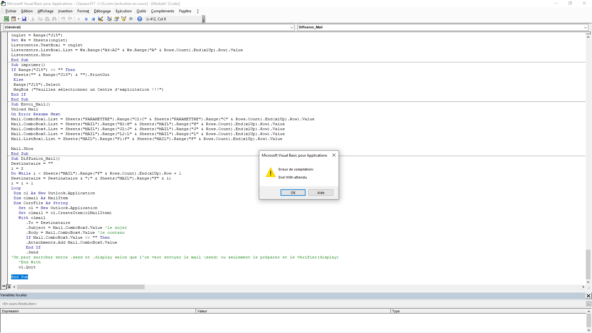 Pour tester la procédure d envoi des mails il faut impérativement que ton application de messagerie Outlook soit ouverte pendant cette phase