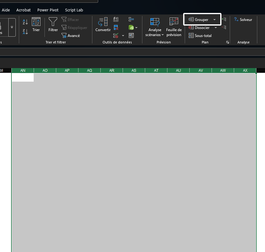 Tu sélectionnes les colonnes et ensuite dans le bandeau tu vas sur Données et Grouper.