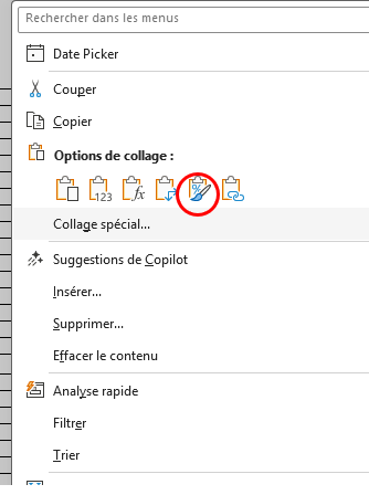 valide, fais un clic droit sur la plage sélectionnée et fais un collage mise en forme :