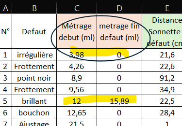 j’ai partiellement réussi mais je veux que lorsque j’ai un defaut de 1ml il fasse une barre dans mon graphique (soit en longueur ou largeur) et une croix lorsqu’il est isolé.