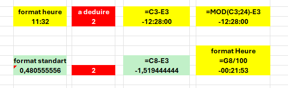 Merci, mais le problème est que je peux avoir des heures négatives.