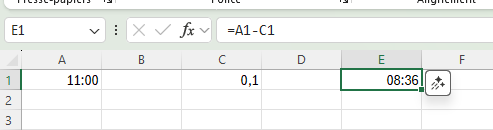 j’aimerai faire une soustraction entre deux cellules mais avec un nombre au format personnalisé h:mm et l’autre au format nombre. J’ai l’abonnement office 365.