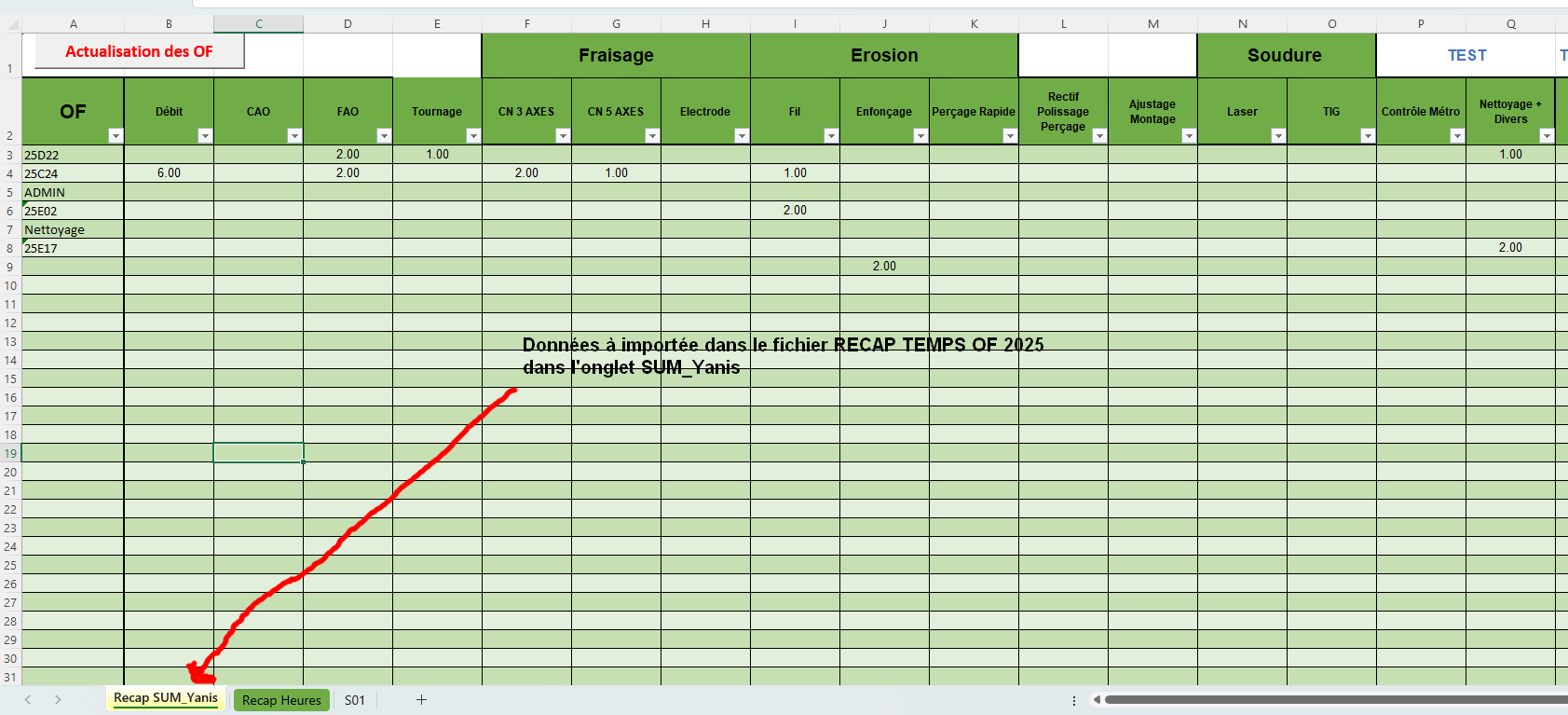 Ces données sont à recopier dans le fichier “RECAP TEMPS OF 2025 dans l’onglet du même nom