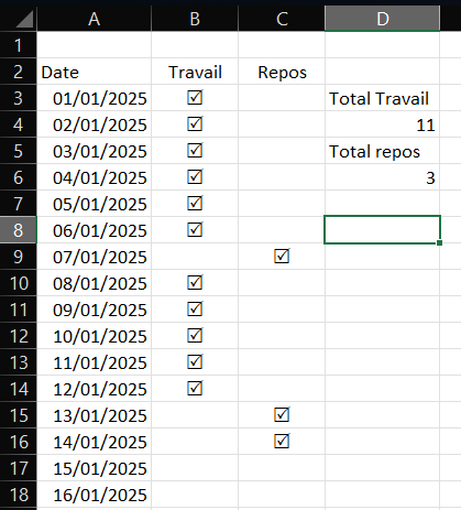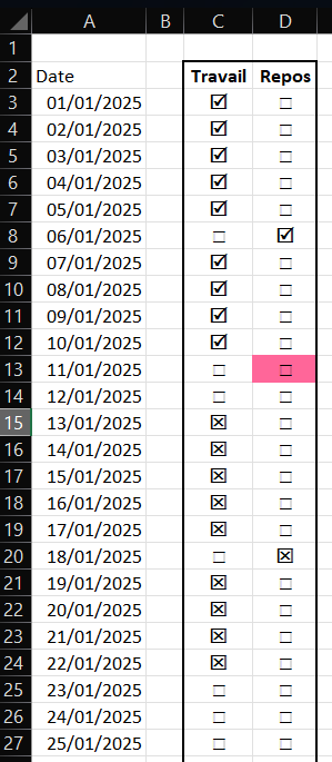 a) pour la 1ère case à cocher de B3 : nom = "Trav01" ; pour celle en dessous :