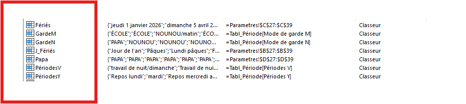 =EXCLURE(REDUCE("";D5:D35;LAMBDA(x;y;SI(y<>"";ASSEMB.V(x;FILTRE(Tabl_Période[[Périodes Y]:[Mode de garde M]];Tabl_Période[Périodes V]=y;""));x)));1)