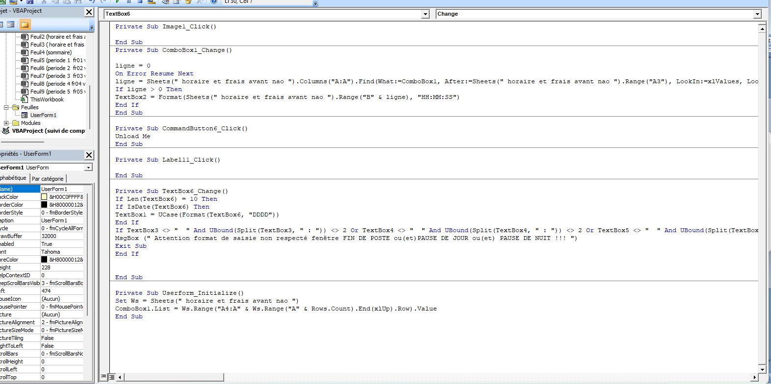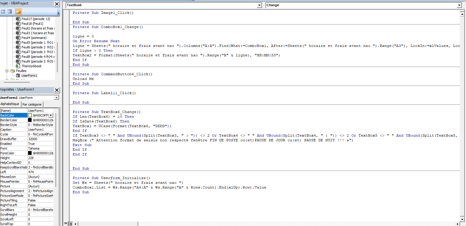 pour la première fenêtre c’est à dire « FIN DE POSTE » le TextBox3 on met ceci :