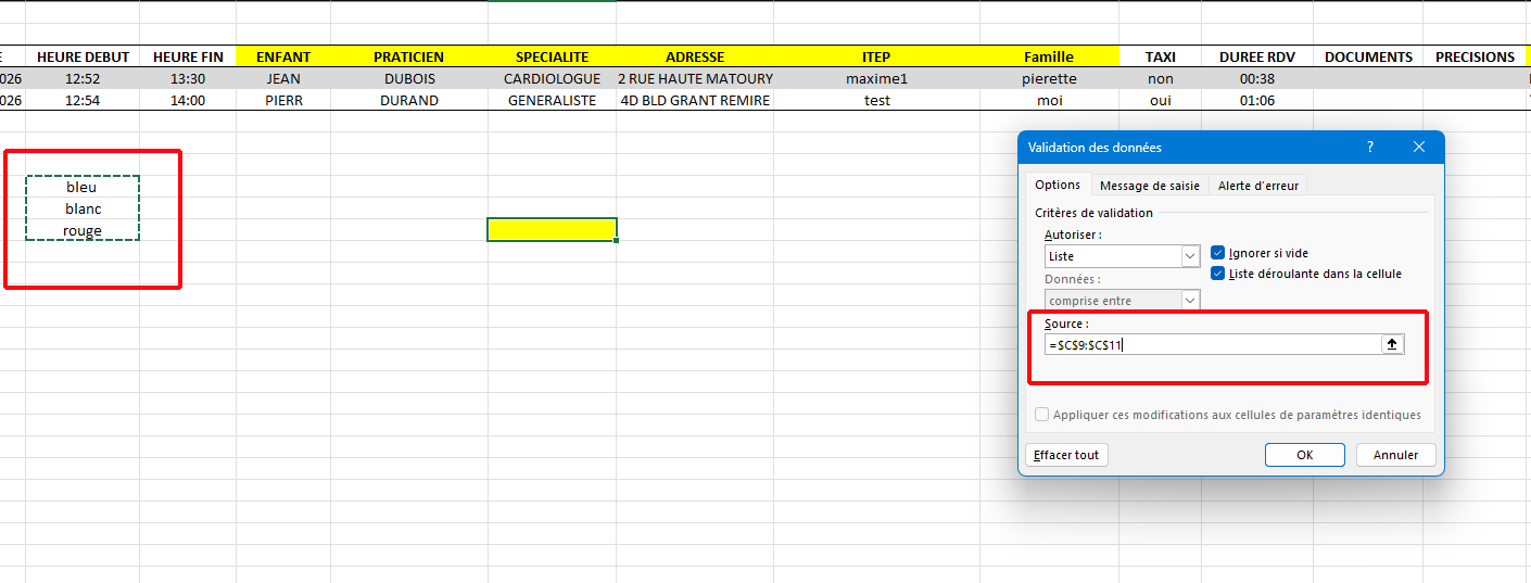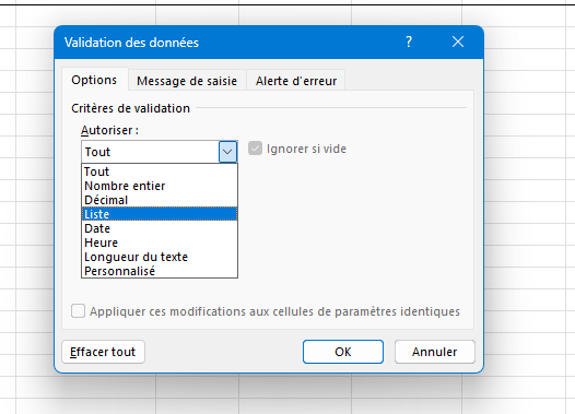 Super! Juste une question: c’est quoi la manip pour avoir la liste déroulante? Je ne peux pas voir la formule et j’aimerais la connaître pour ne pas avoir à demander la prochaine fois. Merci