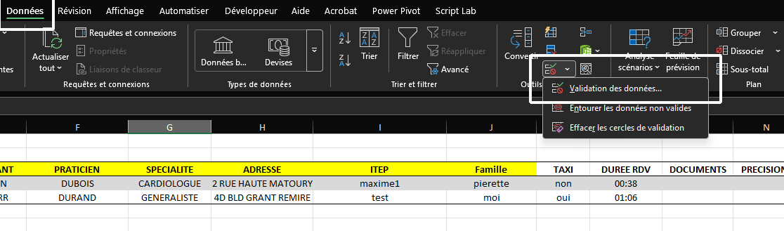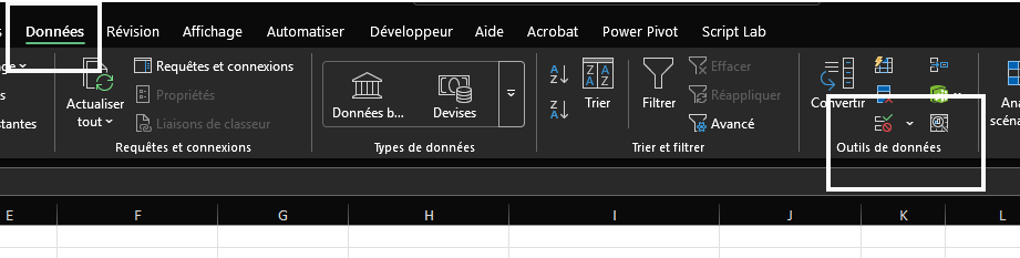 puis dans le bandeau sur l’onglet Données