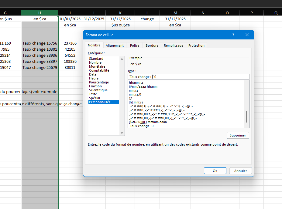 sauf que en colonne H dans les cellules il y a des taux différents dans chaque cellule.