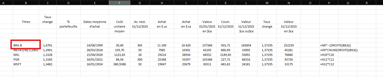 C’est une autre solution très intéressante, ça permet d’avoir le taux de change à l’achat bien en vu. En changeant le taux manuellement, étant donné que le taux est différent à chaque achat, cela permet d’enlever une colonne.