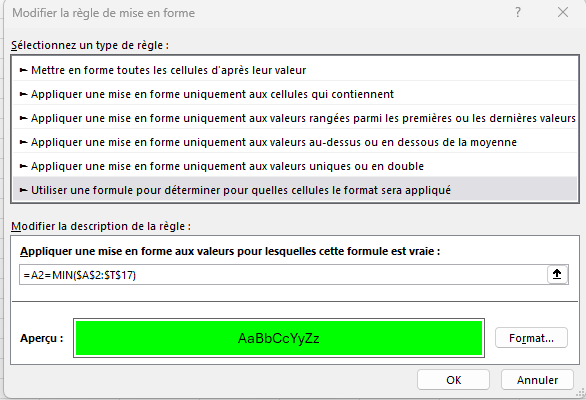 Bonjour à tous, voici mon problème je voudrais faire apparaitre le prix le moins cher en le précisant d’une couleur. Voici mon tableau sachant que j’ai PLUS DE 10 000 LIGNES