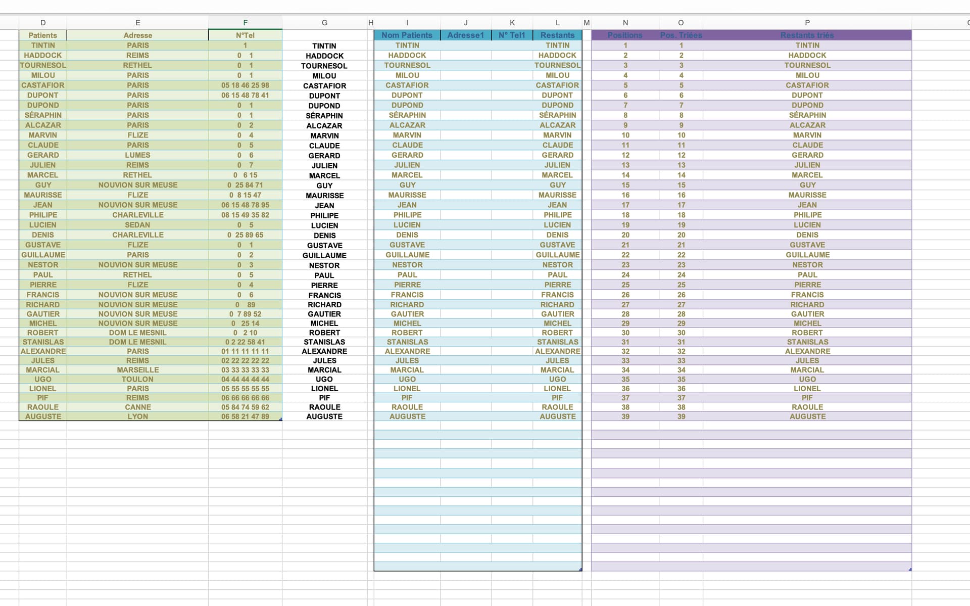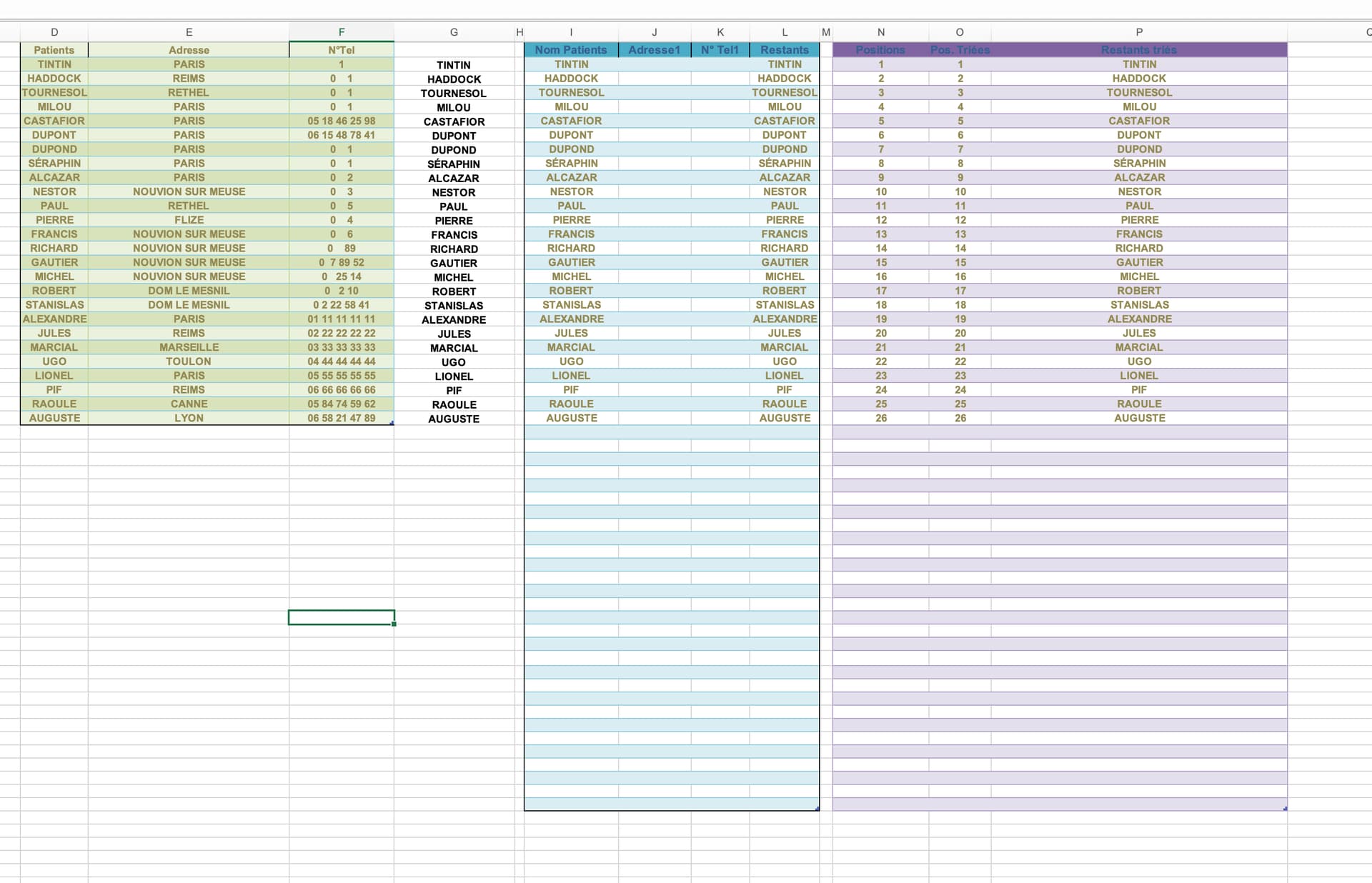 En fait je voudrais pouvoir sélectionner mais patient un par un dans la liste de droite et qu’il s’affiche dans l’ordre de sélection dans le tableau de gauche.