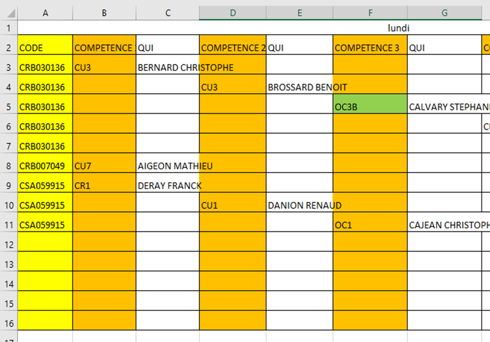 Celui-ci est dynamique donc s’adapte à leur nombre à la fois dans cet onglet et dans celui de destination « PLANNING »