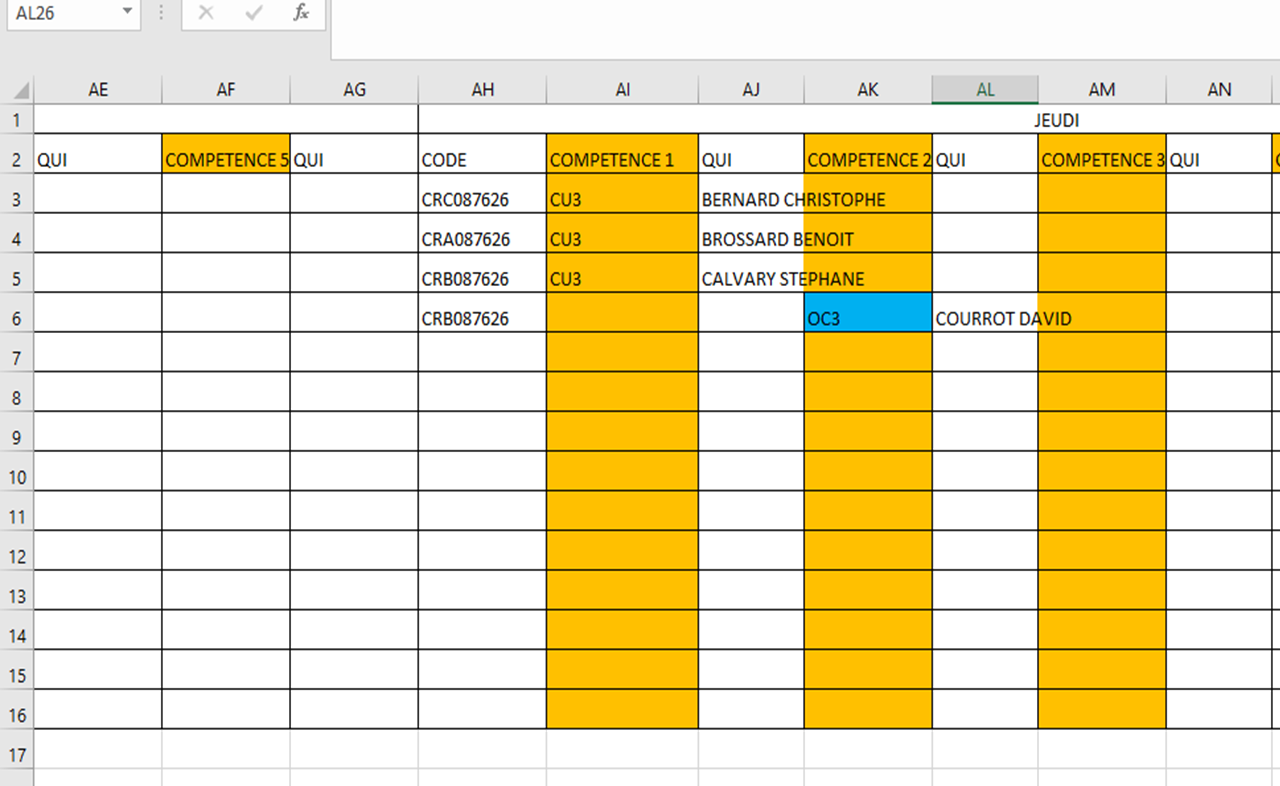 Les colonnes compétence pour ces 2 onglets doivent être dans le même ordre