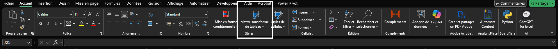 ensuite, tu sélectionnes n’importe quel format de tableau