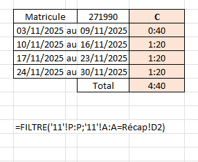 J’aimerai faire un récapitulatif en fonction du Matricule