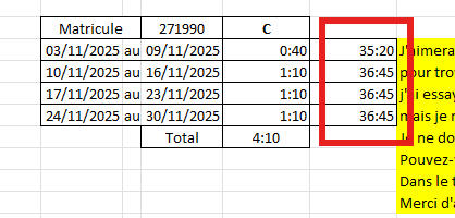J’ai aussi mis une liste deroulante dans la cellule matricule pour que tu vois qu’en changeant le matricule le calcul se fait