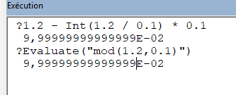 oui, càd un écart de 1e-15 avec 0.1, C’est ce genre de fautes qu’on a souvent, et en utilisant un arrondi, on sait les contourner. Mais avec un integer comme denominateur, aucun problème.