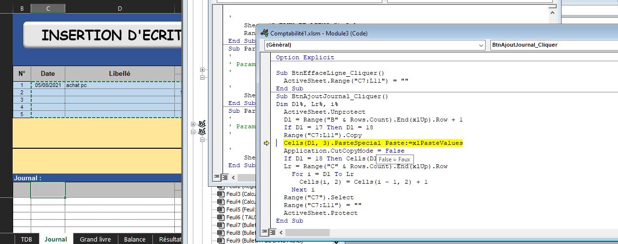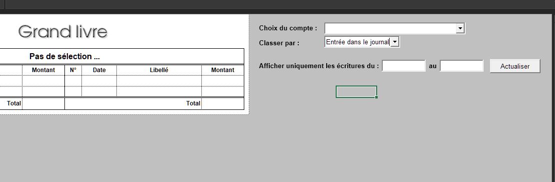 ça bug toujours lors du rajout en journal comme sur mon message avant. J’ai aussi remarqué que sur la feuille grand livre il n’y a plus le tableau ! est ce normal vu qu’il n’y a pas eu d’entrées au journal ?